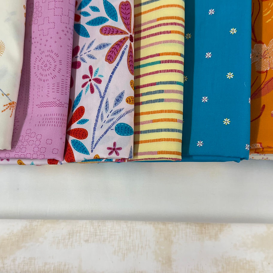 This Fat Quarter Pack with all 8 fabrics from the Artista Line by Art Gallery Fabrics is packed with fun. Its bright cheerful colors bring happiness into your space. Cut by The Cotton Ball, each fat quarter is a minimum of 18" x 21".